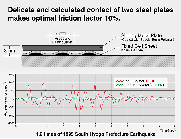 μ-Solator is a seismic isolation device with a very simple mechanism. In addition to being installed as a standalone unit, it can also be applied to isolate only the required areas, allowing flexible adaptation to various conditions such as installation location, cost, and construction schedule. Moreover, μ-Solator can meet seemingly contradictory requirements, such as “remaining stationary during normal conditions while providing seismic isolation only during major earthquakes of seismic intensity 5 or higher.”